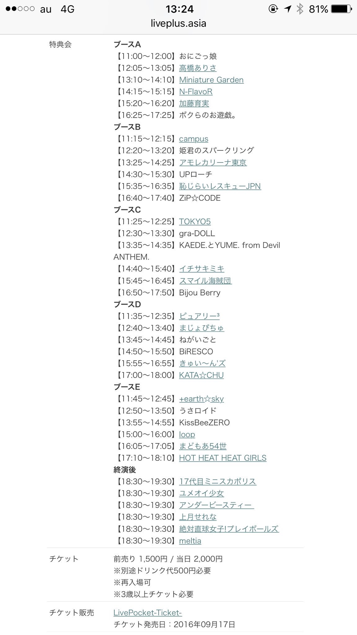 « All Events This event has passed. LIVEプラス @原宿ベルエポック 2016年10月22日 @ 10:30 AM - 10:30 PM « エアリーズ×オトメ魂。Vol.209 エアリズミックライブVol.68 » ZiP☆CODE 16:05〜 【OPEN/START】10:30/11:00 【料金】前¥1.500/当2.000(D別) タイテ 物販 0 + Google Calendar+ iCal Export Details Date: 2016年10月22日 Time: 10:30 AM - 10:30 PM Event Categories: ZiP☆CODE, ライブ予定 B! LINEへ送る